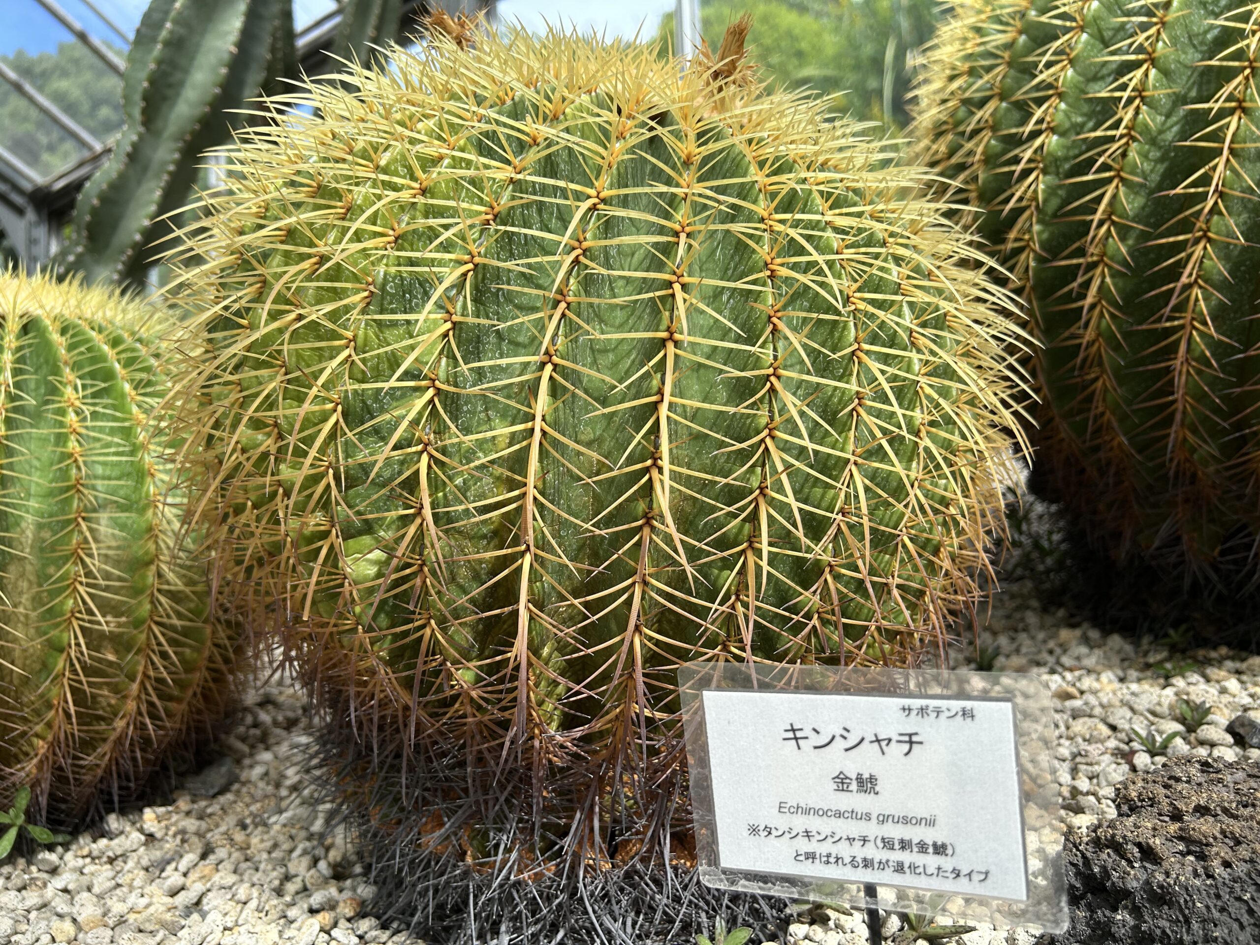 キンシャチ(金鯱)サボテンの花言葉・・・「儚い夢」と「憂い」。これは、開花までに20年以上かかるのに、寿命が30年程度しかないこと、また丸く萎縮した姿が憂いを帯びているように見えることからつけられたと言われているそうです(^^)